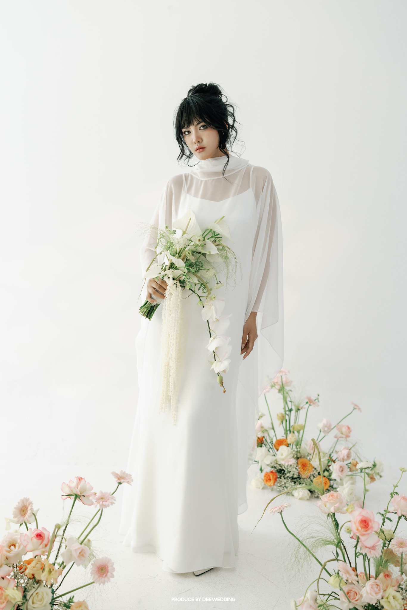 Nếu bạn yêu sự bay bổng, voan, chiffon và ren mềm là lựa chọn lý tưởng cho váy cưới. Chúng tạo cảm giác mềm mại và phù hợp với các concept chụp ảnh tự nhiên hoặc ngoại cảnh nhiều gió.