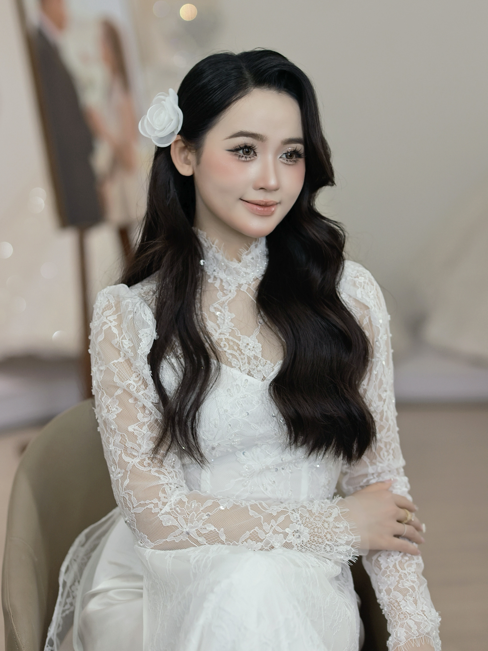 Khuyên tai nhỏ, vòng cổ, cài tóc hoặc veil sẽ tạo điểm nhấn tinh tế, giúp tổng thể hài hòa và nổi bật. Makeup sẽ tôn lên vẻ đẹp tự nhiên kết hợp với các phụ kiện để tạo nên phong cách riêng, vừa sang trọng vừa tinh tế.